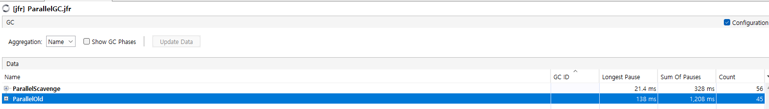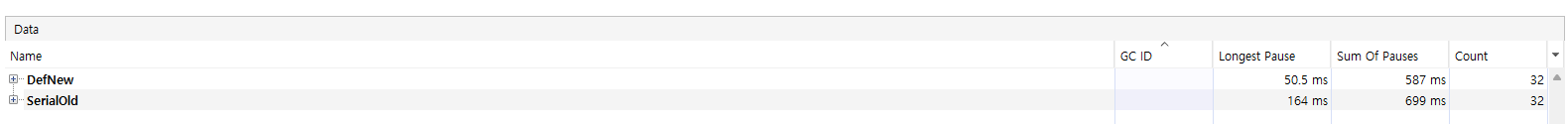 결과가 위와의 반대로 Serial GC가 Parerall GC가 더 좋게 나왔는데, 병렬의 오버헤드가 더 커서 싱글 스레드 성능보다
