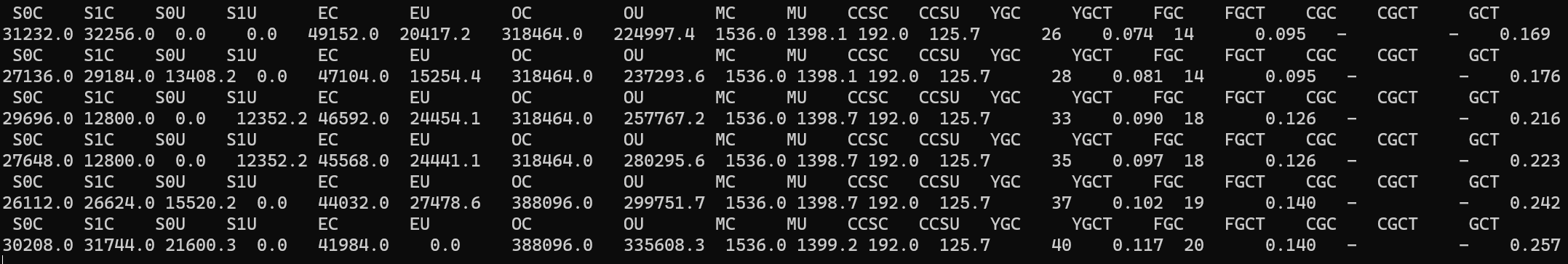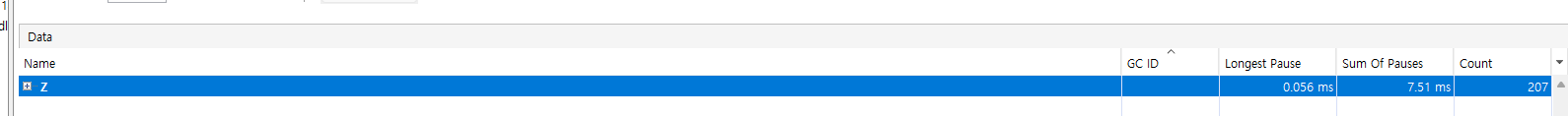 - Z: Logest Pause= 0.056ms, Sum Of Pause= 7.51ms, count = 207