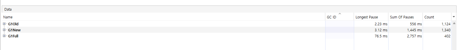 | GC 유형 | 평균 Full GC 일시정지 시간 | 총 GC 일시 정지 시간 |