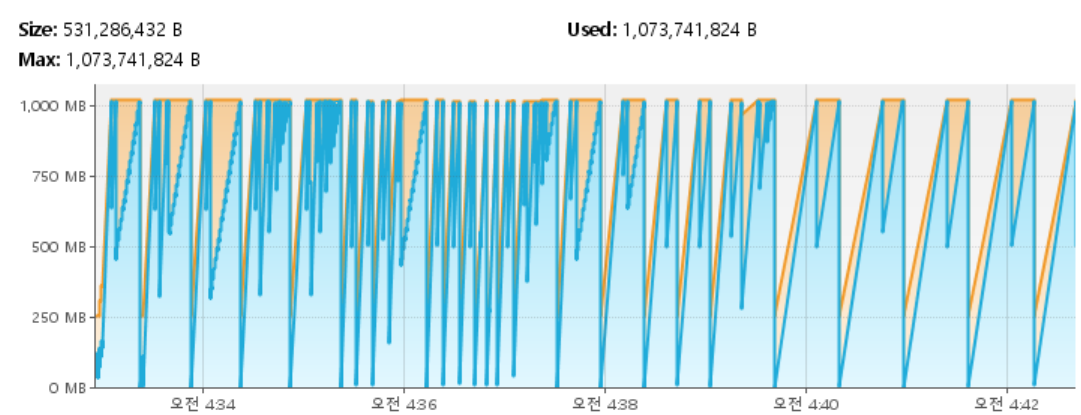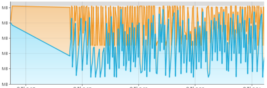 메모리가 순식간에 차는 경우 많은 메모리 확보를 하는데 어려워진다는 것은 알 수 있습니다.