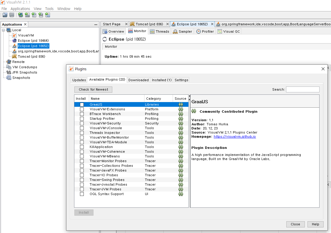 JDK에 포함된 버전이 아닌 경우 홈페이지에서 Visual VM을 내려받을 수 있다.