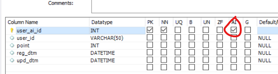 나의 경우엔 후자였기 때문에 DB에서 AI값을 켜주었다.