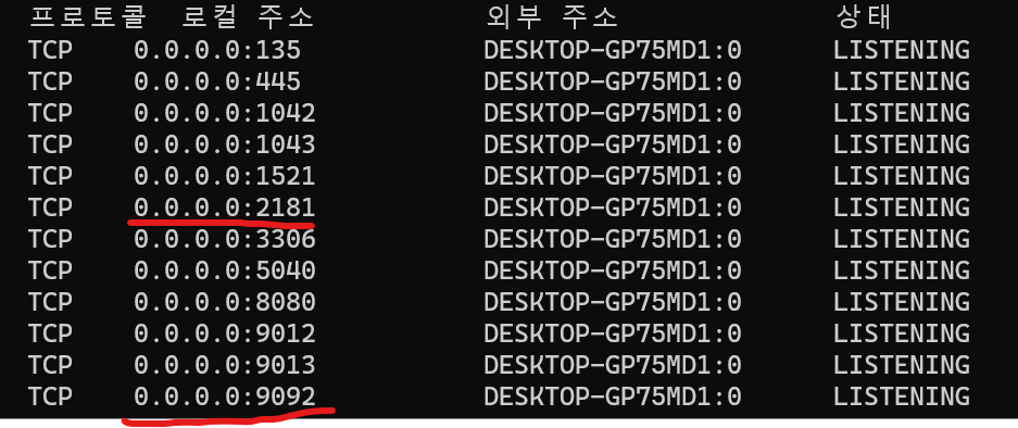 파워쉘에 netstat -a 치면 확인할 수 있다.