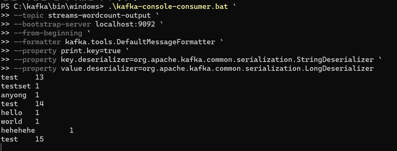 --topic streams-wordcount-output `