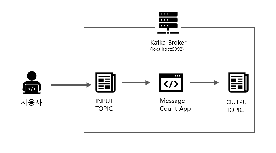 - 하나의 카프카 스트림이 생산하고 소비한다.