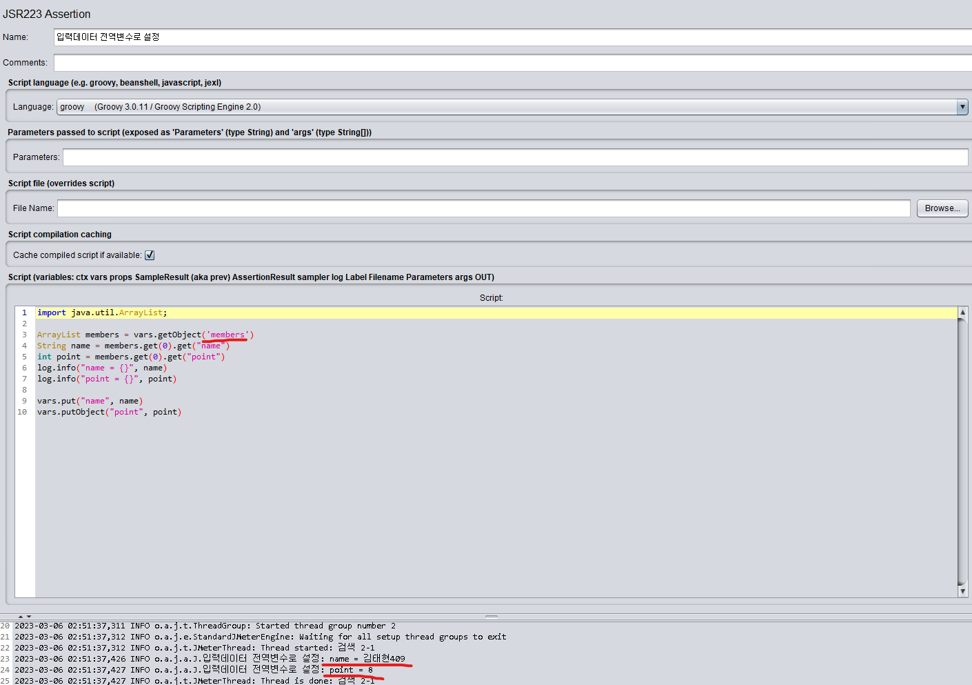 JSR223 Post Processors를 추가 등록하여 지역변수 -> 환경변수로 등록하자
