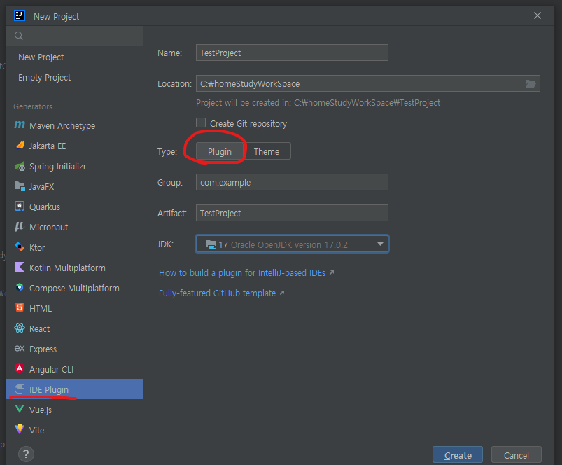 인텔리제이가 23.1 버전으로 업데이트 됨에 따라 플러그인 제작시에 JDK 버전을 17버전을 사용하여야한다.