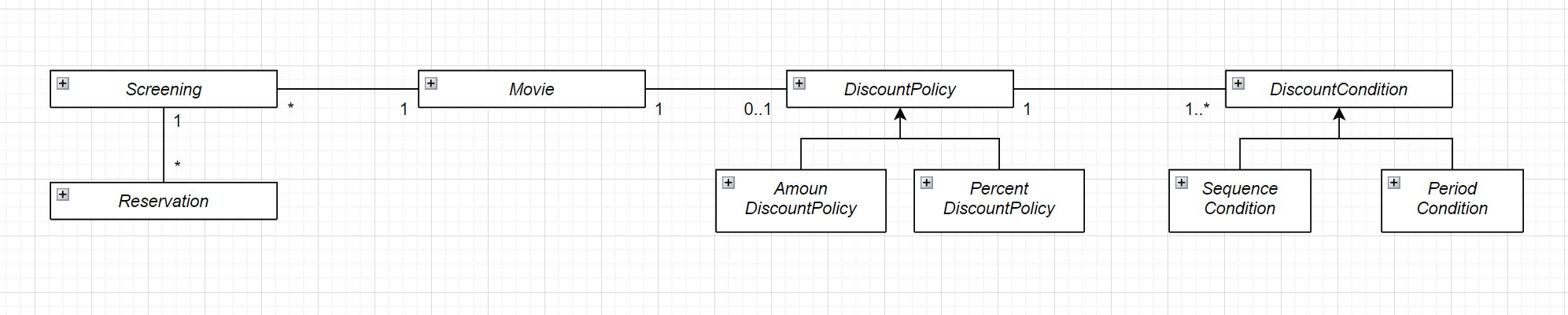 ex) 영화 예매 요금은 최대 하나의 할인 정책과 다수의 할인 조건을 이용해 계산할 수 있다.