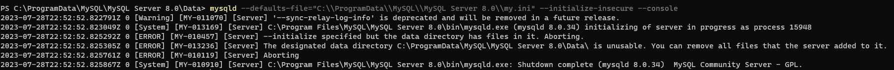 mysqld --defaults-file="C:\\ProgramData\\MySQL\\MySQL Server 8.0\\my.ini" --initialize-insecure --console