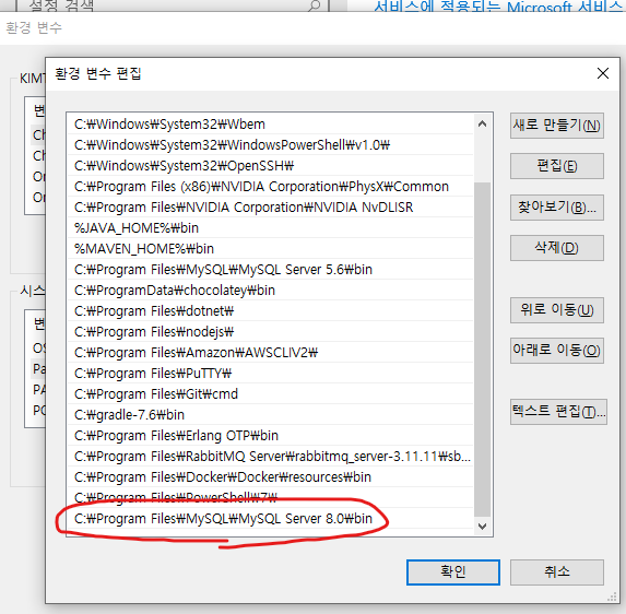 C:\Program Files\MySQL\MySQL Server 8.0\bin (사용자마다 다를 수 있음) 등록 하면 끝난다.