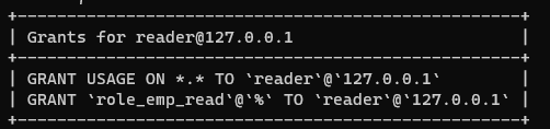 GRANT role_emp_read TO reader@'127.0.0.1';