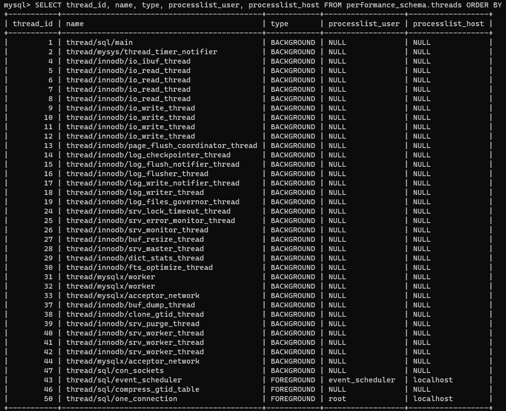 FROM performance_schema.threads