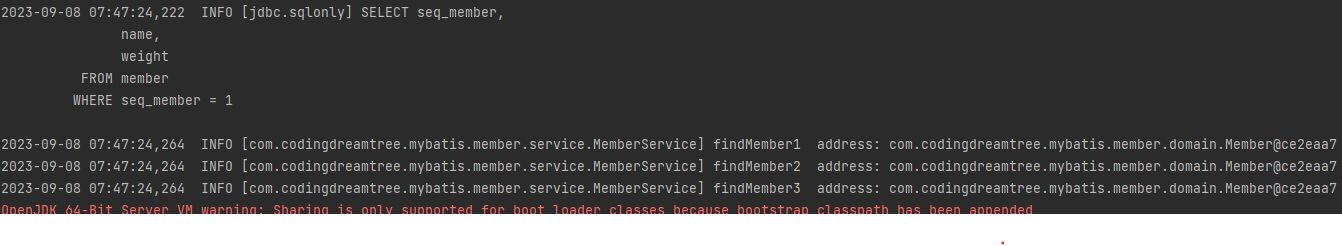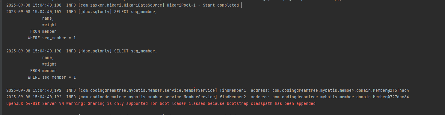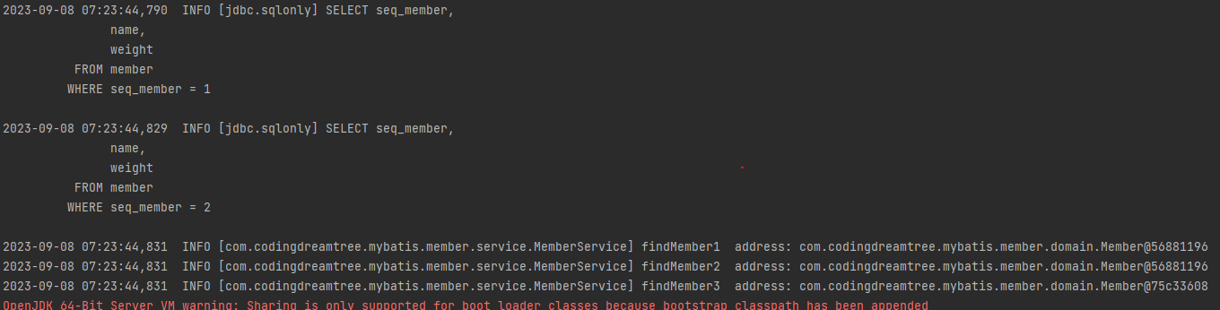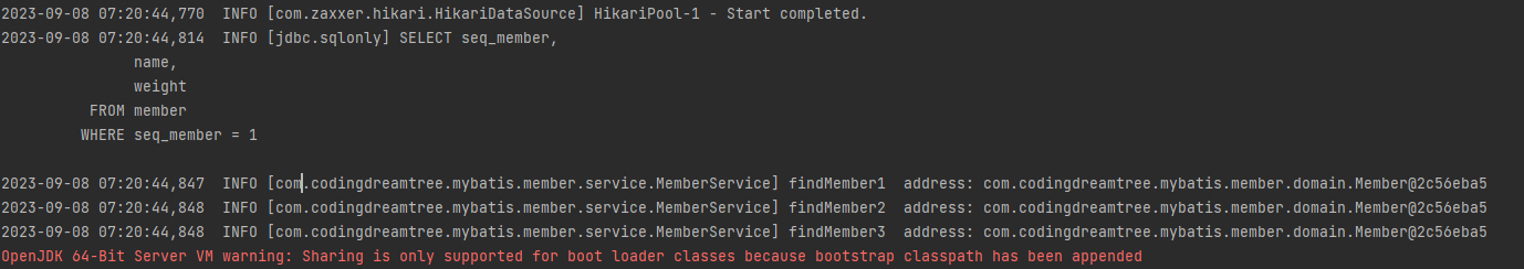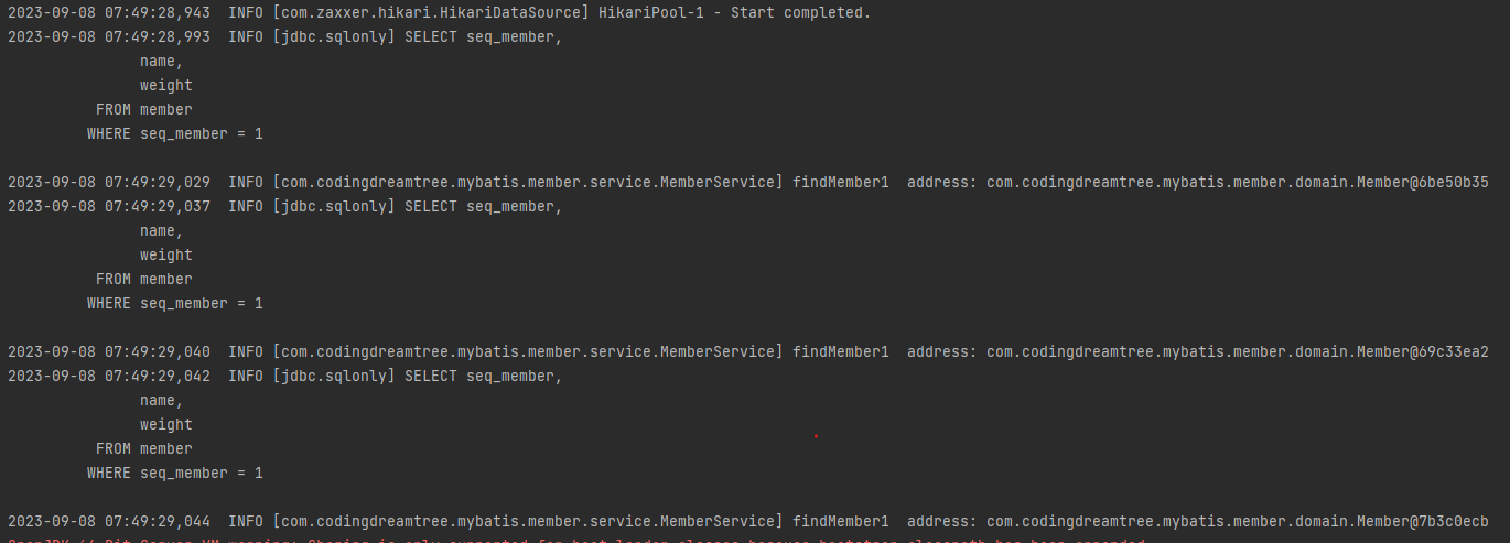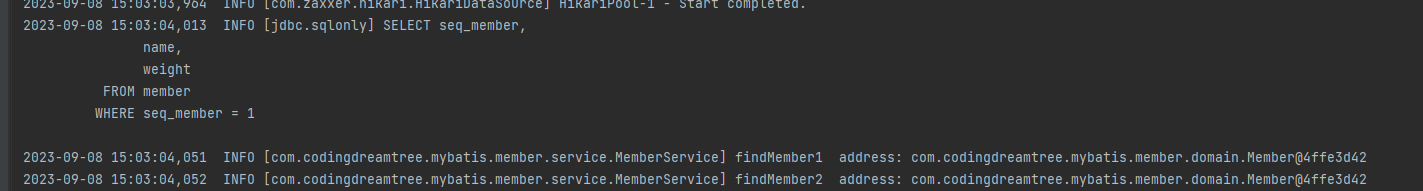 이 경우에도 캐싱이 되지 않고 멤버 인스턴스가 다른 것을 확인 할수 있었다.