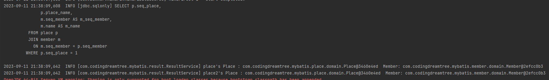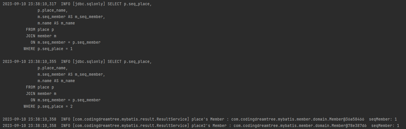 log.info("place's Member : {} seqMember: {}", place.getMember().toString(), place.getMember().getSeqMember());