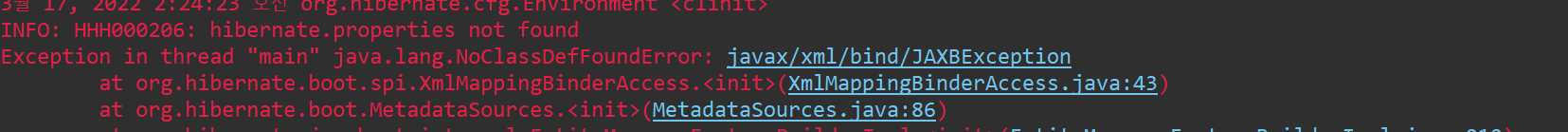 JAVA 11사용시 java.lang.NoClassDefFoundError: javax/xml/bind/JAXBException