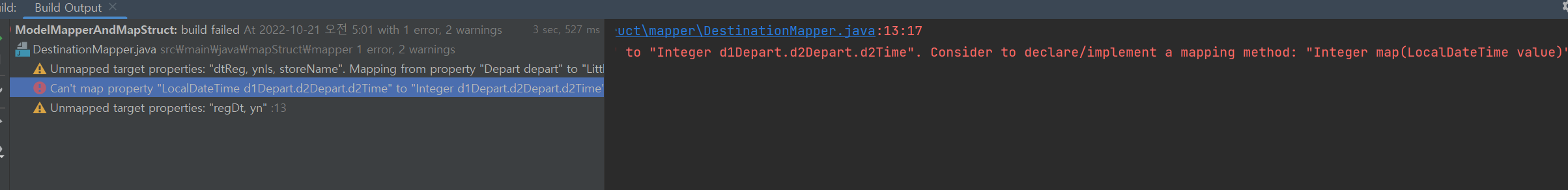 빌드과정에서 에러가 나는것을 확인 할 수 있었다.